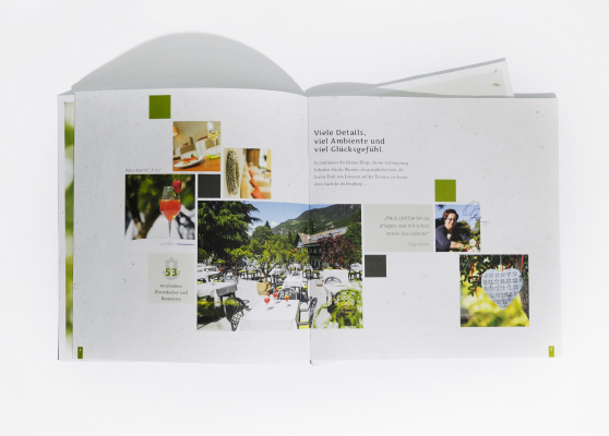 SYMPATHIEFAKTOR PERSONAL. Hotelbroschüren müssen vielversprechend sein, informativ, hübsch gestaltet. Doch reicht das aus? Nein, es fehlt die besondere Bindung zu den Gästen; deshalb stellt Steiner auf jeder Seite einen Mitarbeiter vor, der seine Tätigkeit auf sympathische Art repräsentiert. Ist es nicht schön, über Peter, der sich leidenschaftlich um den Camping-Park kümmert, zu lesen und ihn dann am Morgen beim Blumengießen zuzuwinken?